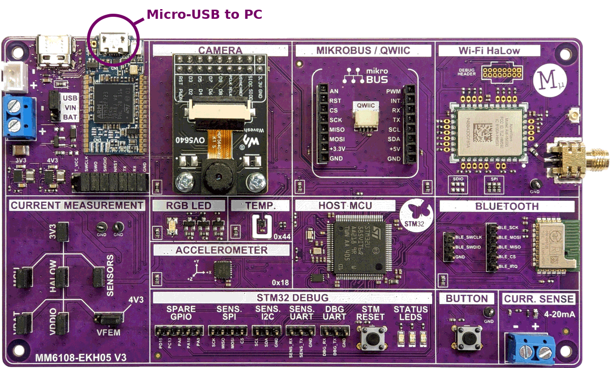 This uses the STM32U585VIT6Q MCU as the host processor on a development board produced by Morse Micro.